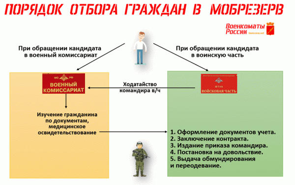 Для уточнения возможности заключить контракт на пребывание в мобрезерве, кандидату необходимо обратиться в военный комиссариат района (города) по месту жительства.