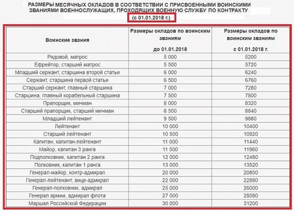 к содержанию ↑Размеры месячных окладов в соответствии с присвоенными воинскими званиями