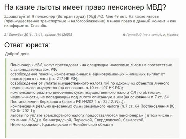 к содержанию ↑Налоговые льготы для сотрудников МВД в отставке