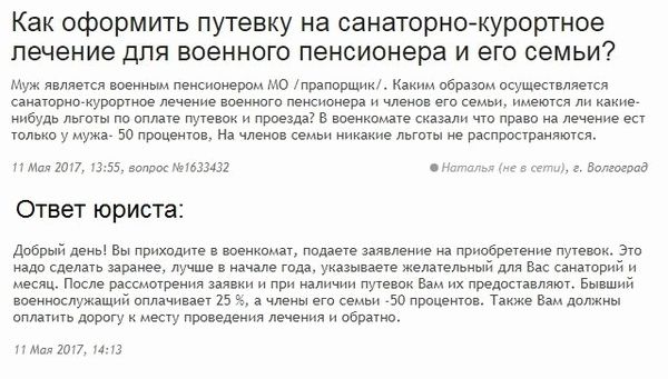 При этом путевка не является полностью бесплатной, а частично оплачивается самим пенсионером за счет собственных средств. Так, установлено, что самостоятельно бывший сотрудник правоохранительных органов оплачивает лишь четверть ее стоимости.