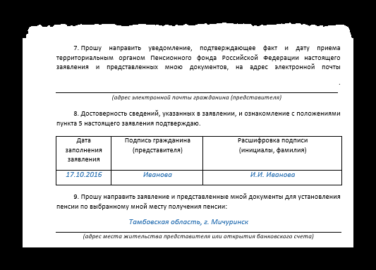 16) В девятом пункте отображается адрес, где должен быть открыт банковский счет для перевода пенсии.