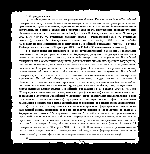 Подпись в конце бланке будет свидетельствовать о предупреждении пенсионера о своем поведении на протяжении пенсионного обеспечения.