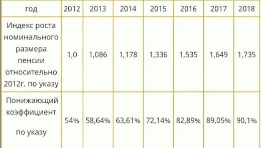 В 2012 году появилось понятие понижающего коэффициента при расчете пенсий. Действовал он только в отношении пенсий бывших военных. Это решение было вынужденно принято Правительством, в целях борьбы с экономическим кризисом в РФ.