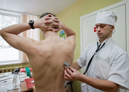 Молодые люди, призванные в армию, проходят врачебную комиссию. Минимально осмотр проводят специалисты: