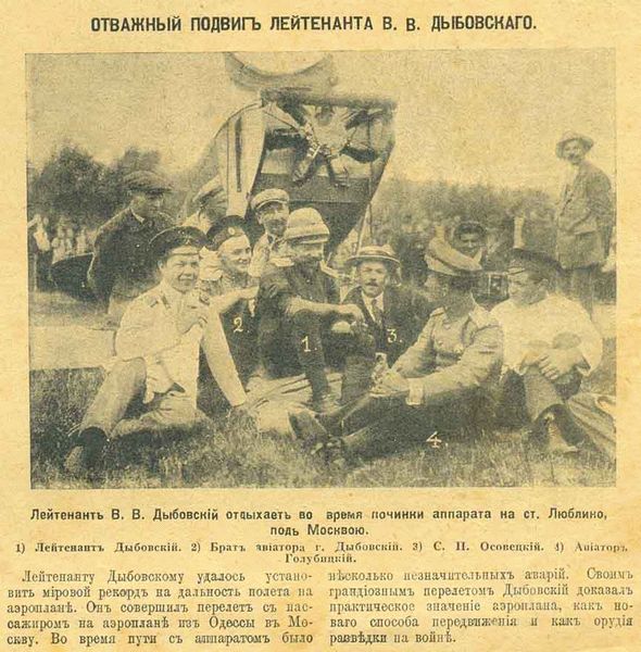 В августе этого же года совершили всемирно известные дальние перелеты из Севастополя в Санкт-Петербург лейтенант Дыбовский В.В. и штабс-капитан Андреади Д.Г.