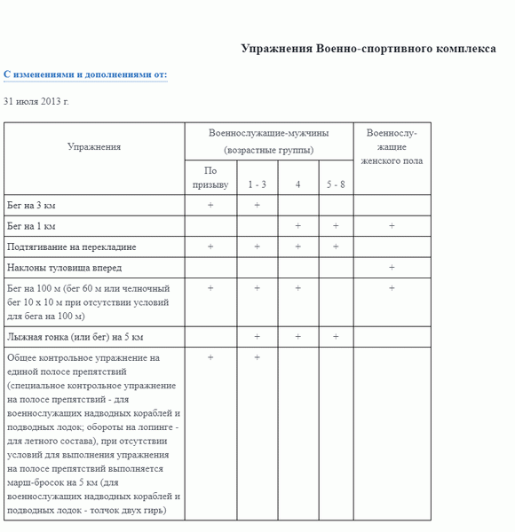 Выполняются упражнения для категории «военнослужащие по призыву» — для юношей, для девушек, согласно первой возрастной категории – до 25 лет.