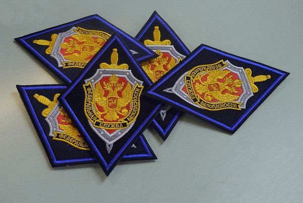 Представители Федеральной службы безопасности носят шевроны в виде ромбовидных щитов. На правом рукаве помещается эмблема, указывающая подразделение (к примеру, департамент контрразведки, департамент организационно-кадровой работы, военно-мобилизационный отдел и центр общественных связей), а на левом — общая эмблема ФСБ. Фон знака отличия может быть выполнен в черном, светло-зеленом, сером цвете.