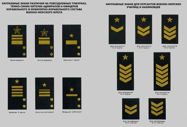 Тёмно-синие – на остальных предметах формы, например, шевроны на шинель. У курсантов нашивки тёмно-синии.