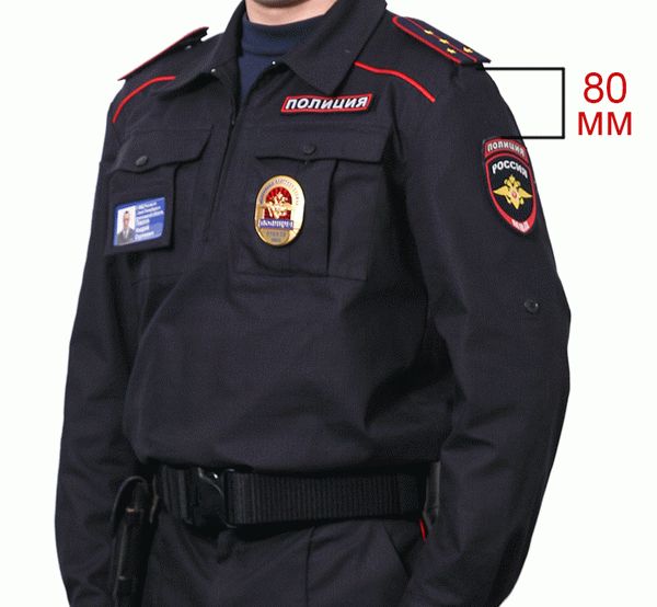 Полицейские нашивки должны находиться на расстоянии 80 мм от сгиба или плечевого шва. В случае если на рукаве присутствует карман, то галун будет расположен по его центру.