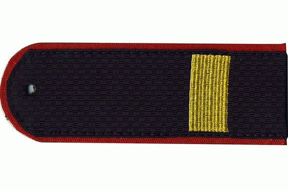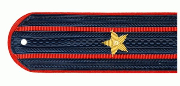 К младшему офицерскому составу относятся следующие звания: младший и старший лейтенант, капитан. Старший носит погоны майора, подполковника и полковника. Цвет эполета синий, полосы красные, знаки отличия желтые, форма полукруглая.