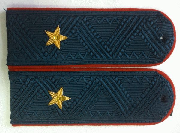| Старший лейтенант, отличия от младшего | 3, 21 мм, на лычке, у старшего лейтенанта они по оба конца от нее | Такие же, как лейтенантские погоны |