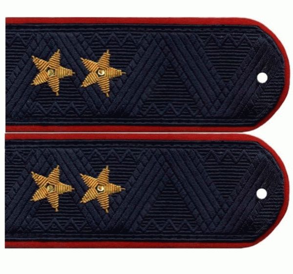 Второй вариант характерен для званий младший лейтенант и генерал-майор. Дистанция между несколькими звездами, расположенными по всей длине эполета, не изменяется, вне зависимости от чина и службы. Она всегда составляет 25 мм.