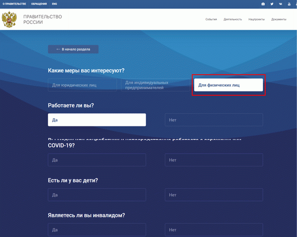 Шаг 3. Ответьте на все вопросы и узнайте, какая помощь вам положена от государства.