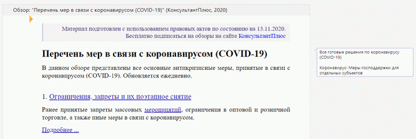 Из-за повторной вспышки заболевания Роспотребнадзор вернул ограничения. Бесплатно отслеживайте изменения с помощью специального обзора в КонсультантПлюс. На одной странице собраны все ограничения, меры поддержки и рекомендации на период пандемии.